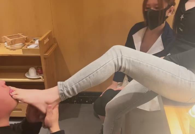 【伊晨】包房玩狗舔脏靴底狗喂食裸足互舔