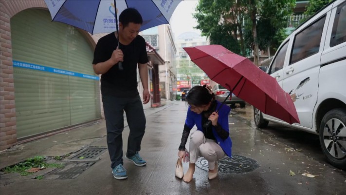 一名精神小伙尾随美女进入其家中,装作换锁工人,偷偷藏了一把锁。
