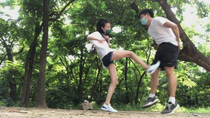 公园ol美女联系防狼术-踢裆踩裆