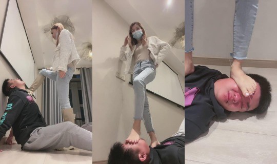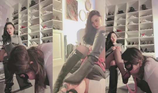妮可 调教 高跟靴子踩踏 鞭子抽